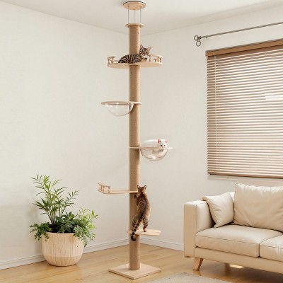 GOTGELIF Floor-to-Ceiling Adjustable 106-113" Height Cat Tree Tower - 5-Level Climbing & Scratching Playground