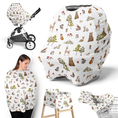Sweet Jojo Designs Boy, Girl, Unisex/Gender Neutral 5-in-1 Multi Use Baby Nursing Cover Watercolor Woodland Forest Animals Multicolor