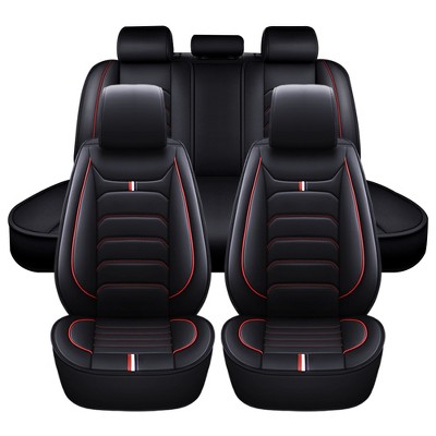 Bekrvio Full Set Car Seat Covers, PU Leather Seat Covers for 5 Seats, Universal Fit Automotive Interior Protector for Sedan SUV Truck,Black/Red