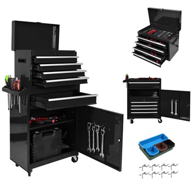 5-Drawer Rolling Tool Chest,2-in-1 Large Rolling Tool Chest with Locking Wheels & Anti-Slip Trays, Detachable Toolbox