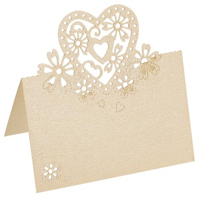 Unique Bargains Hollow Heart Shape Cut Design Favor Decor Table Name Place Cards 50 Pcs