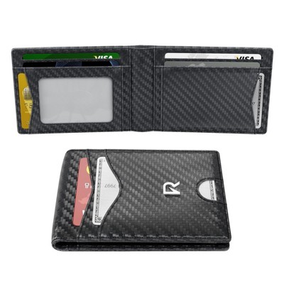 Narwey Slim Wallet for Men with Money Clip, Leather RFID Blocking Mens Wallet, Minimalist Credit Card Holder (Money Pocket, Black Carbon)