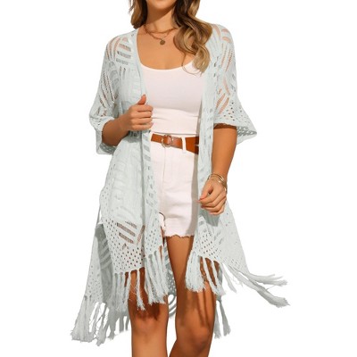 INSPIRE CHIC Women's Boho Open Front Short Sleeve Lightweight Fringe Beach Knit Cardigans
