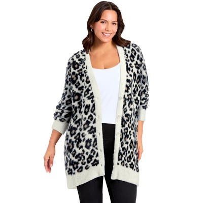 Roaman's Plus Size Lightweight Handkerchief Hem Cardigan Sweater