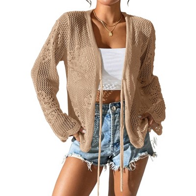 Womens Tie Front Cardigan Lightweight Crochet Shrug Spring Knit Cover Up