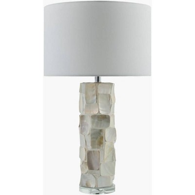 LumiSource (Set of 2) Pearl 29" Contemporary Table Lamps Matte White Poly, Natural Shell and White Linen Shade