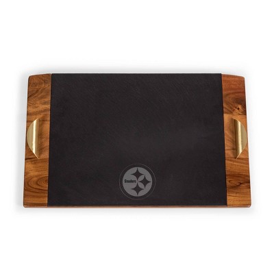 NFL Seattle Seahawks Covina Acacia Wood and Slate Black with Gold Accents Serving Tray