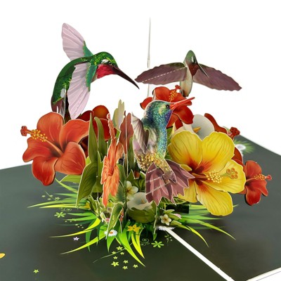 Wrapables 3D Pop Up Floral Greeting Card, Flower Bouquet Card for Mother's Day, Birthday, Anniversary, All Occasions, Hummingbirds