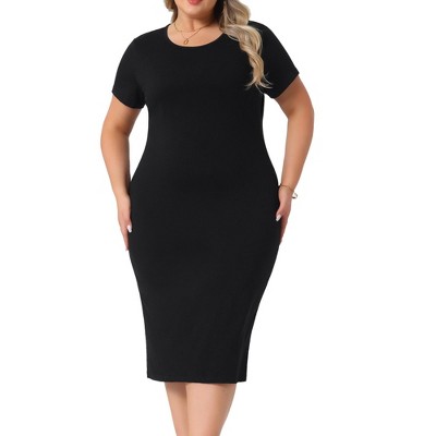 Agnes Orinda Women's Plus Size Short Sleeve Crew Neck Casual Midi Bodycon Dresses