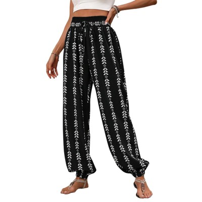 BLUEMING Womens Palazzo Pants Boho Summer Flowy High Waisted Yoga Trousers Geometric Print Lantern Pants