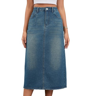 INSPIRE CHIC Women's Denim Stretch High Waisted Split Back Pockets Casual Pencil Midi Skirts