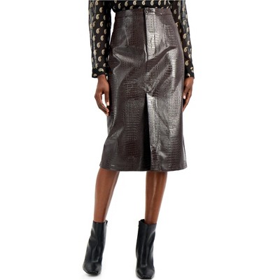I.N.C International Concepts Womens Faux Leather Pencil Skirt, brown, 10
