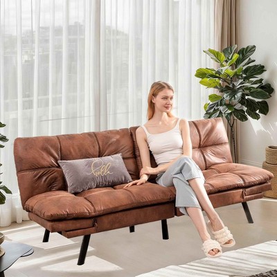 - brown faux leather sofa