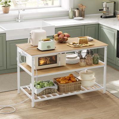VASAGLE Kitchen Island with 3 Shelves, 47.2 Inches Width Kitchen Shelf with Power Strip, Large Worktop, Stable Steel Structure