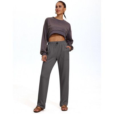 PINSPARK Womens Straight Leg Sweatpants Casual Athletic Workout Pants Stretch Soft Lounge Pants with Pockets