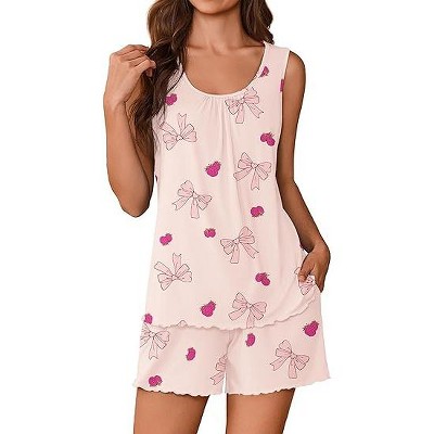 Ekouaer Womens Pajamas Sets 2 Piece Cute Tank Top and Shorts Lounge Set Sleeveless Pjs Set Sweet Sleepwear