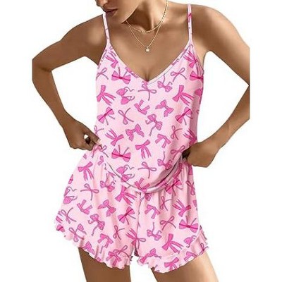 Avidlove Cami Pajama Set for Women 2 Piece PJ Set Ribbed Sleepwear Set Short Nightwear with Bow