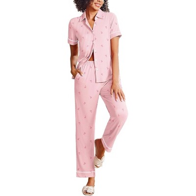 Ekouaer Womens Pajama Sets 2 Piece Button Down Short Sleeve Pjs Set Soft Lounge Set with Long Pants