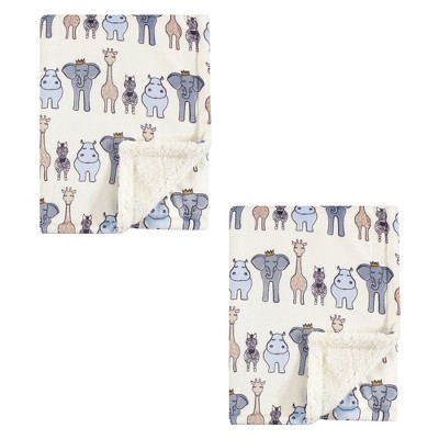Hudson Baby Infant Baby Plush Mink and Faux Shearling Blanket, Royal Safari 2-Piece, One Size