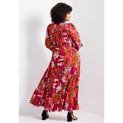 Women's Floral Print V-Neck Wrap Dress Ruffled Long Sleeve Smocked Waist Maxi Dress Party Dress