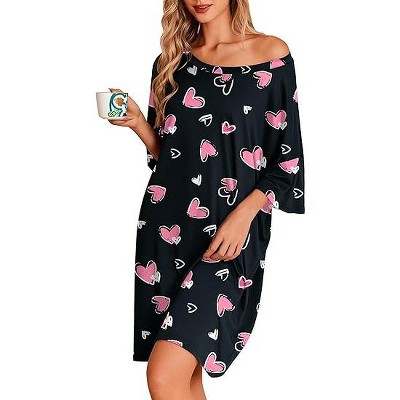 Ekouaer Nightgowns for Women Oversized Sleep Shirt Short Sleeve Nightshirt T-Shirt Dress Sleepwear