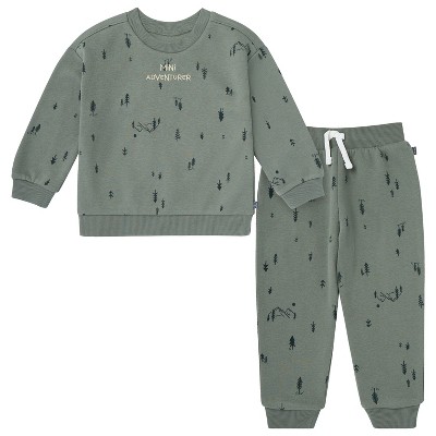 Andy & Evan Toddler Truck Appliqué Sweater & Green Twill Jogger Set