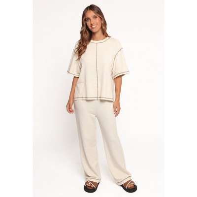 Womens Elegant Casual Sets Knitted Sweatsuit Sets 2 Piece Outfits with Sweater Short Sleeve Tops and Wide Leg Sweatpants