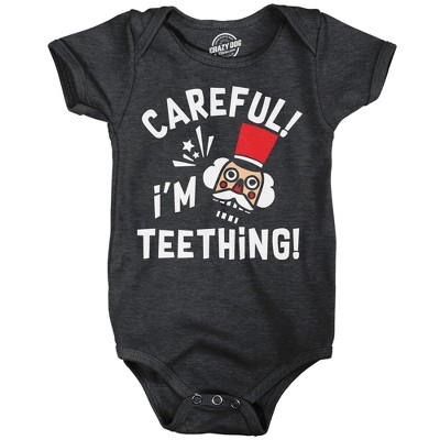 Careful Im Teething Baby Bodysuit Funny Sarcastic Christmas Graphic Novelty Jumper For Infants - Crazy Dog Baby Bodysuit Gift For Christmas