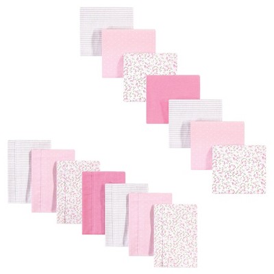 Hudson Baby Infant Girl Cotton Flannel Burp Cloths and Receiving Blankets, 8-Piece, Flamingos, One Size