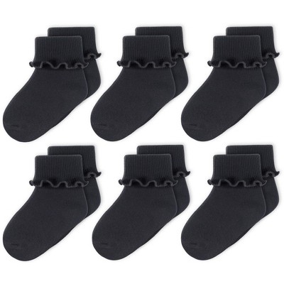 Cozyway Baby Girls Socks, Ruffle Ripple Edge Turn Cuff Sock - 9-24 Months Toddler - 6 pack, Black