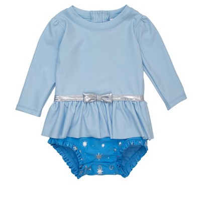 RuffleButts Baby Girls UPF50+ Princess Long Sleeve Bow Skirted One Piece Swimsuit