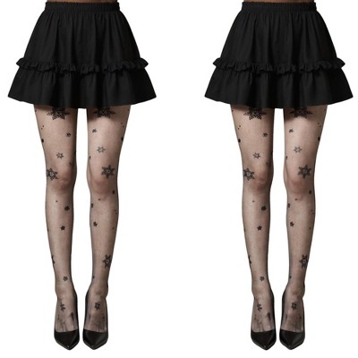 Anna-Kaci Women's 2-Pair Floral Lace Pattern Sheer Tights with Stretch Fit Suitable Height 5'1-5'8