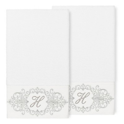 Avanti Granite with Silver Script Monogram Fingertip Towel Letter B