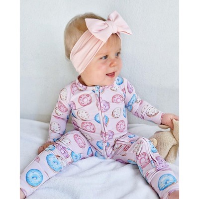 Lev Baby Girls' Bamboo Convertible Zipper Romper – Donuts Print One-Piece Baby Girl Clothes (6–12M to 18–24M)