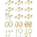 21-Pair Hypoallergenic Flat Back Stud Earrings Set, Surgical Stainless Steel with Screw Backs for Sensitive Ears