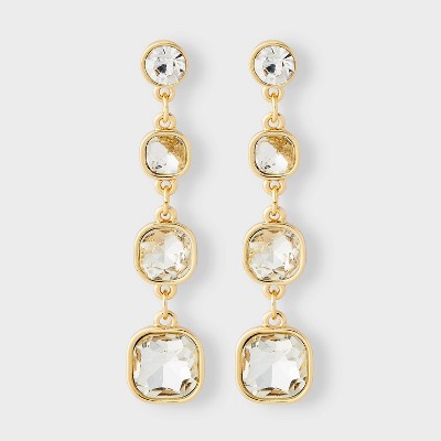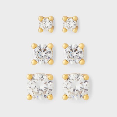 14K Gold Plated Cubic Zirconia Stud Stainless Steel Post Earring Set 3pc - A New Day™