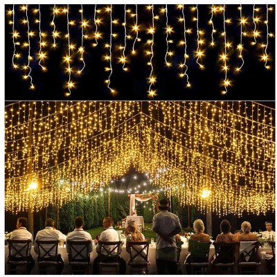 Itopfox 33ft 400LED Icicle Christmas Lights 75 Drops 8 Modes Plug In Waterproof Curtain String Lights 1 Pack Warm White