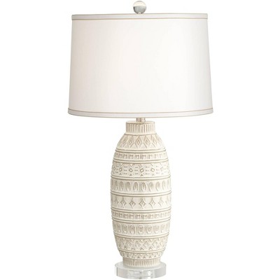 360 Lighting Cullen 31" Tall Large Modern Coastal End Table Lamp Beige Almond Ceramic Single White Shade Living Room Bedroom Bedside Nightstand House