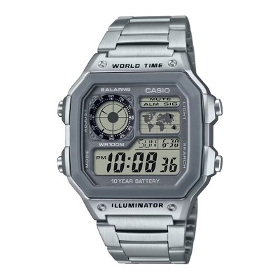 Casio Men's Multi-Function Digital World Time Watch with Stainless Steel Band - AE-1200WHD-7A