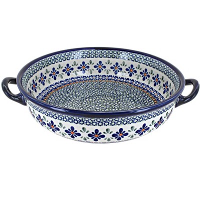 Blue Rose Polish Pottery 1454 Zaklady Small Baker with Handles