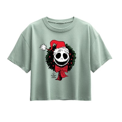 Girls' - Nightmare Before Christmas - Jack Wreath Short Sleeve Boxy Graphic T-Shirt