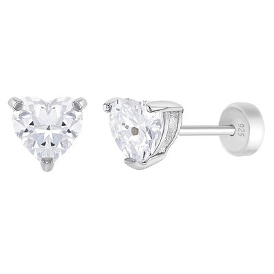 Girl's Cubic Zirconia Letter Initial Screw Back Sterling Silver Earrings - In Season Jewelry