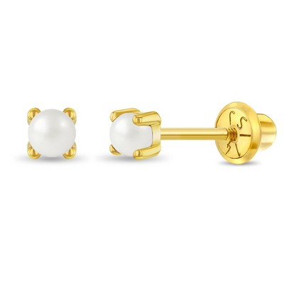 Girls' Pronged Freshwater Cultured Pearl Screw Back 14k Gold Earrings - In Season Jewelry