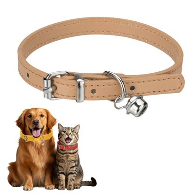 Unique Bargains Adjustable Buckle PU Leather Dog Collar with Bell Intended for Kitten Cats / Small Animals