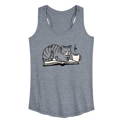 Women's - Instant Message - Cat On Book Graphic Racerback Tank
