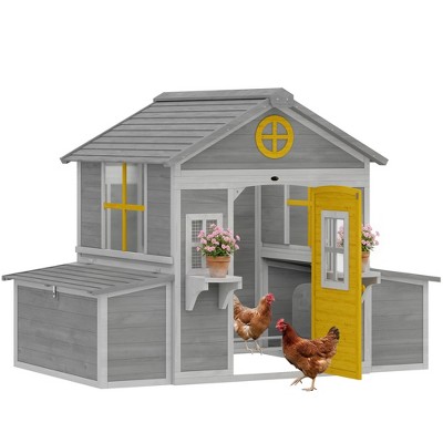 PawHut Chicken Coop, Wooden Hen House Outdoor Playhouse for 2-4 Chickens, Poultry Cage with Planter Pots and Boxes