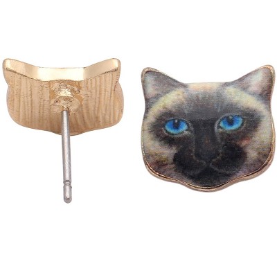 Siamese Kitty Cat Stud Earrings for Women CZ Blue Eye Ginger Lyne Collection
