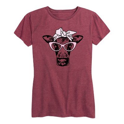 Women's - Instant Message - Cat Eye Glasses Cow Short Sleeve Graphic T-Shirt