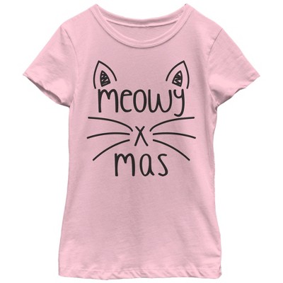 Girls' - Instant Message - Christmas Cat Happy Pawlidays Wreath Fitted Short Sleeve Graphic T-Shirt