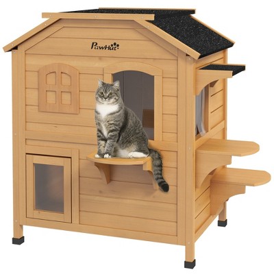 PawHut Outdoor Cat House with Balcony, Feral Cat Shelter with Weatherproof Openable Top, Escape Door, Removable Panel & Floor, for Backyard, Outside